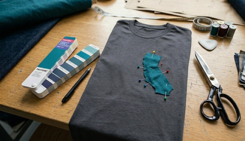 Imagine a school mascot peeking out from behind a state-shaped pocket, or a hidden brand message that is only visible when you look inside. Because we print the fabric before the pocket is attached, the result is seamless and perfectly aligned— a level of detail that is nearly impossible to achieve on a pre-made shirt.